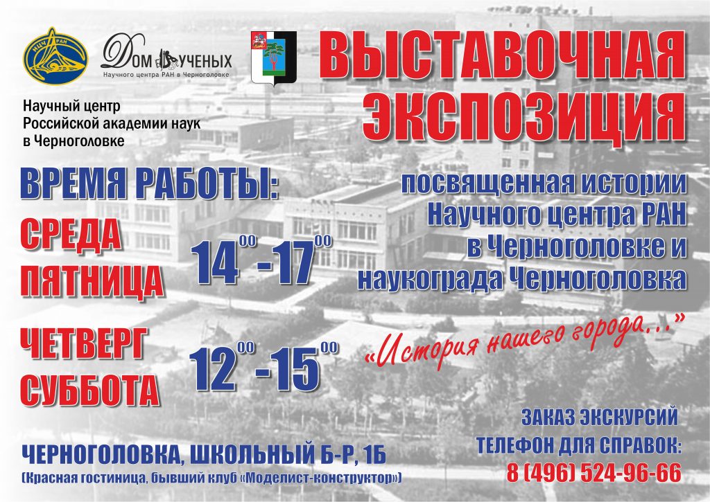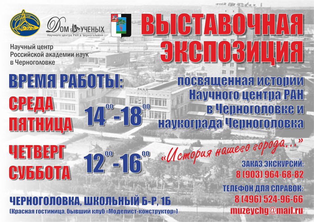 Режим работы Экспозиции, посвященной истории Научного центра РАН в Черноголовке и наукограда Черноголовка