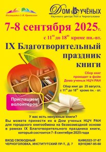IX Благотворительный праздник книги пройдет в Доме ученых НЦЧ РАН 6-7 сентября 2025 г.