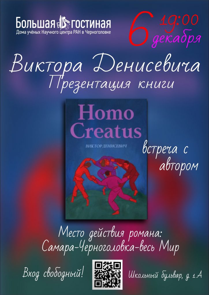 6 декабря в 19.00 в Большой гостиной состоится творческая встреча с писателем Витором Денисевичем (Черноголовка-Москва), который представит свой новый роман «Homo creatus».