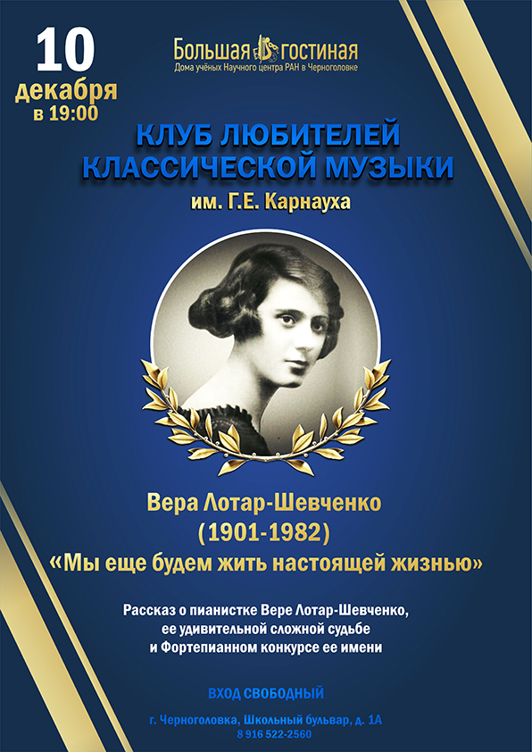КЛУБ ЛЮБИТЕЛЕЙ КЛАССИЧЕСКОЙ МУЗЫКИ им. Г. Е. Карнауха — Рассказ о пианистке Вере Лотар-Шевченко, ее удивительной сложной судьбе и Фортепианном конкурсе ее имени
