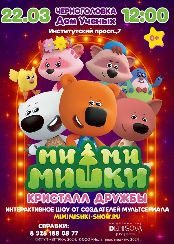 22 марта в 12.00 в киноконцертном зале Дома ученых РАН в Черноголовке будет показан детский спектакль «МиМиМишки. Кристалл дружбы».