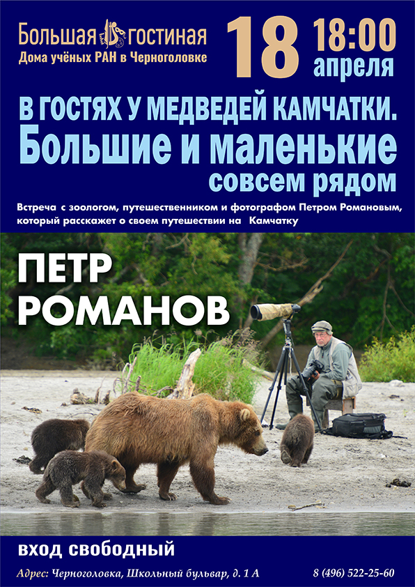 Встреча с зоологом, путешественником и фотографом Петром Романовым, который расскажет о своем путешествии на  Камчатку