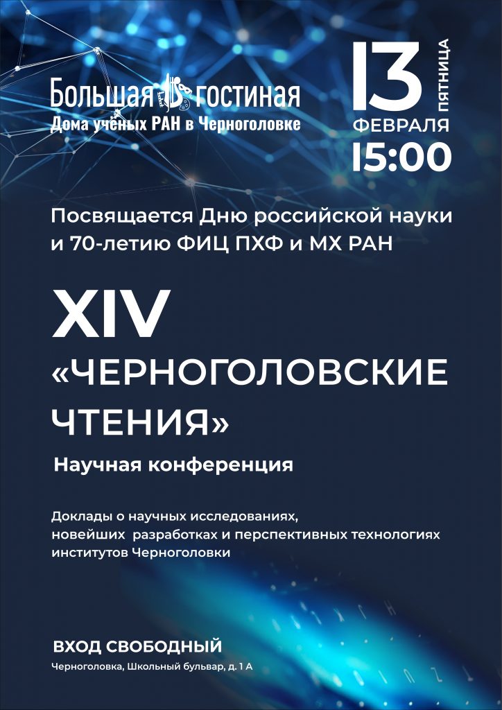 13 февраля с 15.00 до 18.00 в Большой гостиной Дома ученых РАН в Черноголовке пройдет XIV научная конференция «Черноголовские чтения».