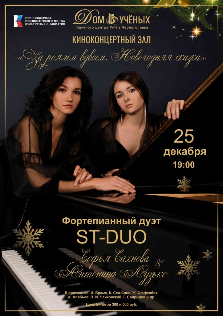 25 декабря в 19.00 на сцене киноконцертного зала Дома ученых НЦЧ РАН выступит фортепианный дуэт — ST-Duo.