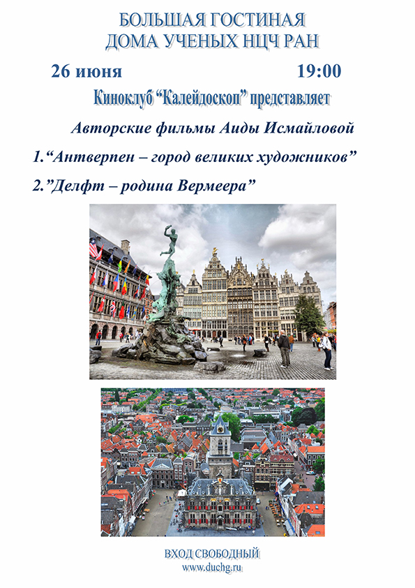Клуб «КАЛЕЙДОСКОП» представляет авторские фильмы АИДЫ ИСМАЙЛОВОЙ: «Антверпен – город великих художников» и «Делфт – родина Вермеера»