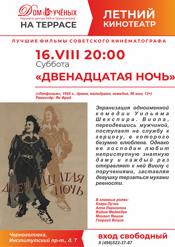 Летний кинотеатр на террасе Дома учёных. Лучшие фильмы советского кинематографа: «Двенадцатая ночь»
