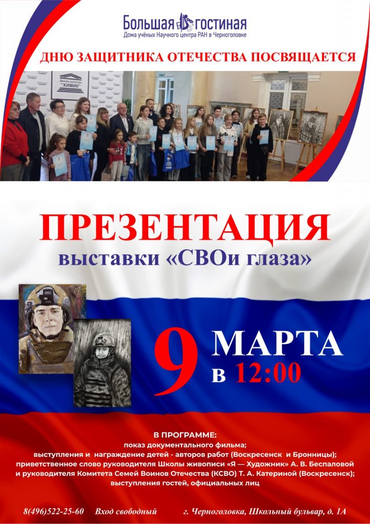 Презентация выставки живописи «СВОи глаза». Портреты бойцов- участников СВО, выполненные детьми, учащимися Школы Живописи «Я-Художник» (Бронницы, Воскресенск)