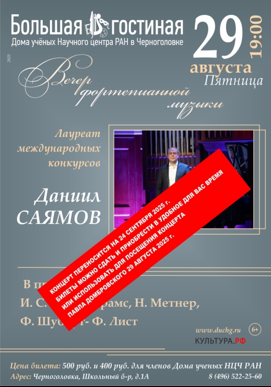 Вечер фортепианной музыки Даниила Саямова ПЕРЕНОСИТСЯ на 24 сентября 2025 г.