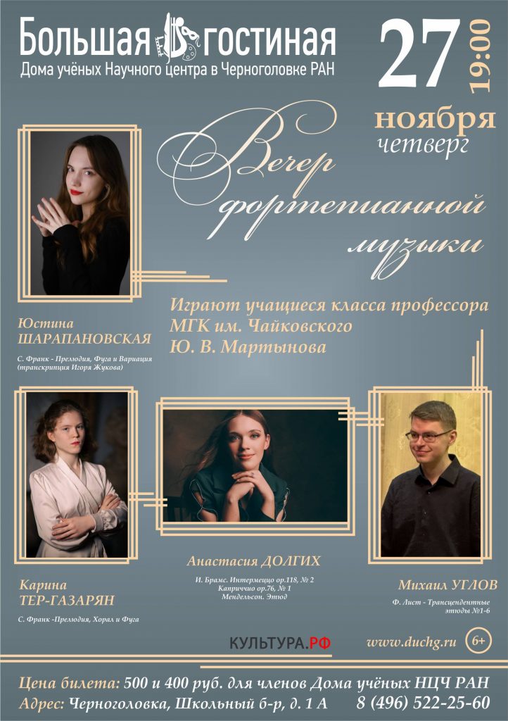 Вечер фортепианной музыки. Играют учащиеся класса профессора МГК им. Чайковского Ю. В. Мартынова